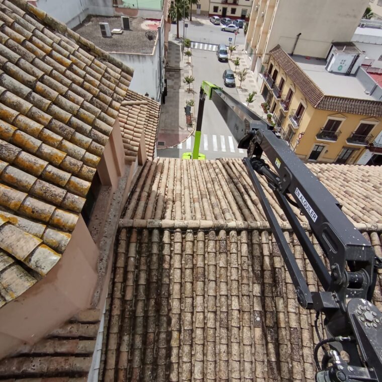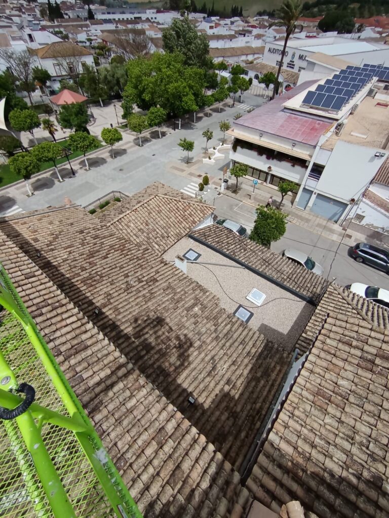 Igualmente hay que destacar la cantidad de tejas y bajantes que se están arreglando como resultado de las tremendas borrascas vividas en enero y febrero de este año.
