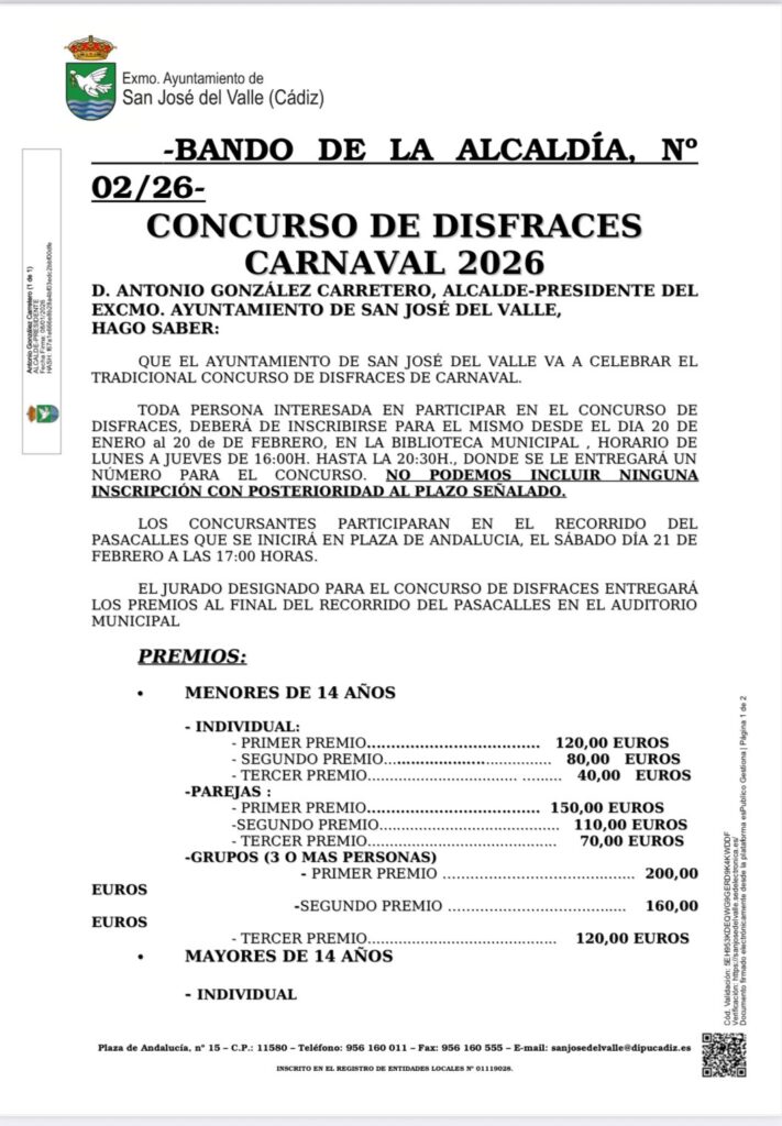 🎉 Pasacalles: 21 de febrero a las 17:00 h (Plaza de Andalucía)