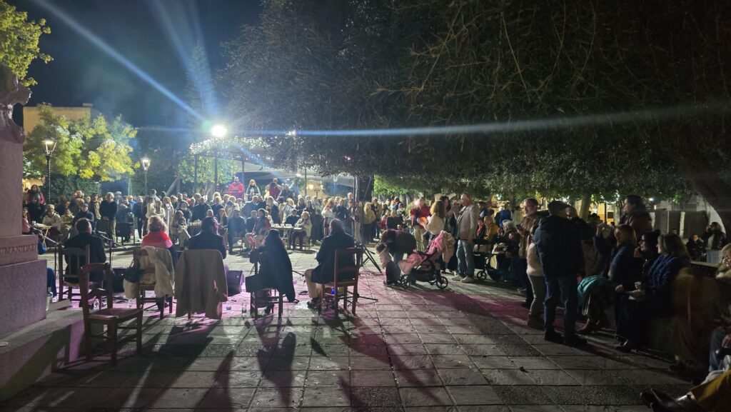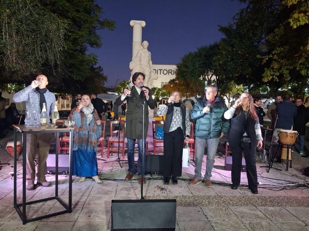 Zambomba navideña con el grupo flamenco jerezano de Paqui Lorda, encendido de las luces navideñas, inauguración del Belén de la Plaza elaborado voluntariamente por Antonio García «Cata» , nieve artificial para los más peques y todo acompañado de una buena candela, anís, buñuelos de nuestra Adelina y chocolate calentito elaborado por Vicente Vargas.